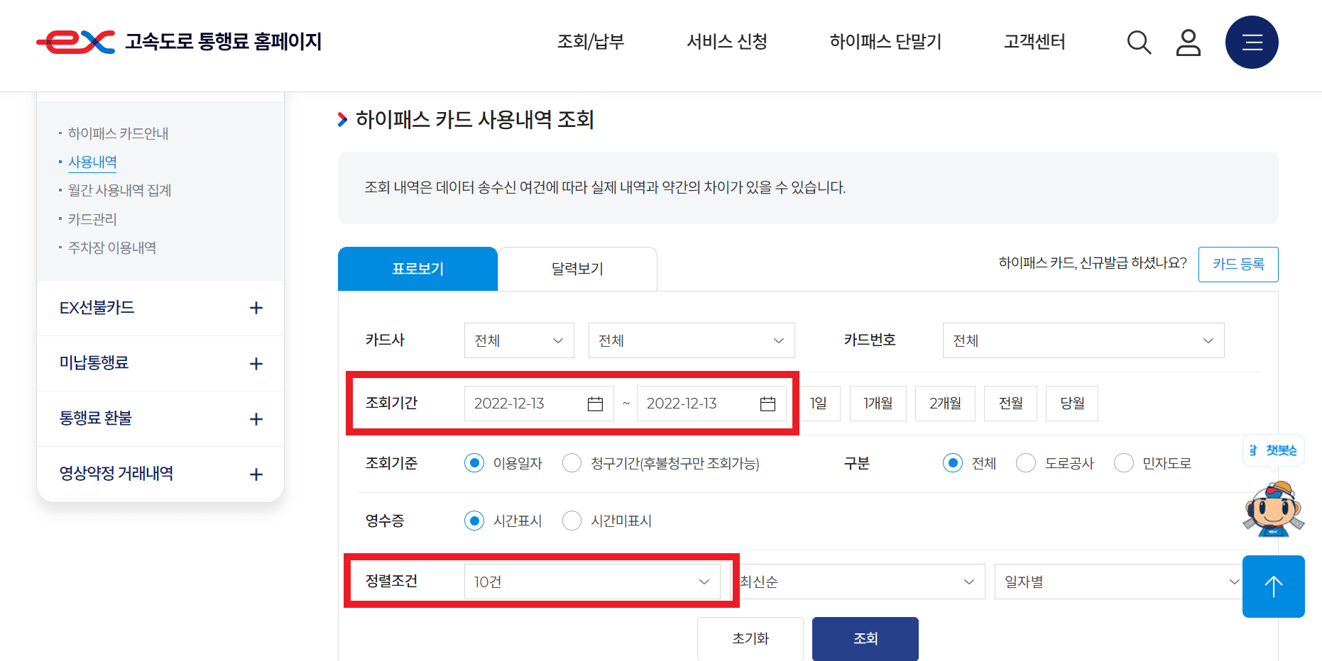 고속도로 통행료 홈페이지에서는 도로공사와 민자고속도로의 모든 고속도로에 대한 통행료 정보를 알 수 있습니다. 하지만 정산된 테이터가 영업소별로 전송하는 시간이 다르기 때문에 최근 내역을 조회할 때, 2일 이후에 조회하는 게 가장 정확합니다.