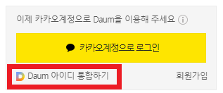 1. 먼저 다음 포털 사이트에 접속하여 우측 로그인 창 아래에 'Daum 아이디 통합하기'를 선택합니다.