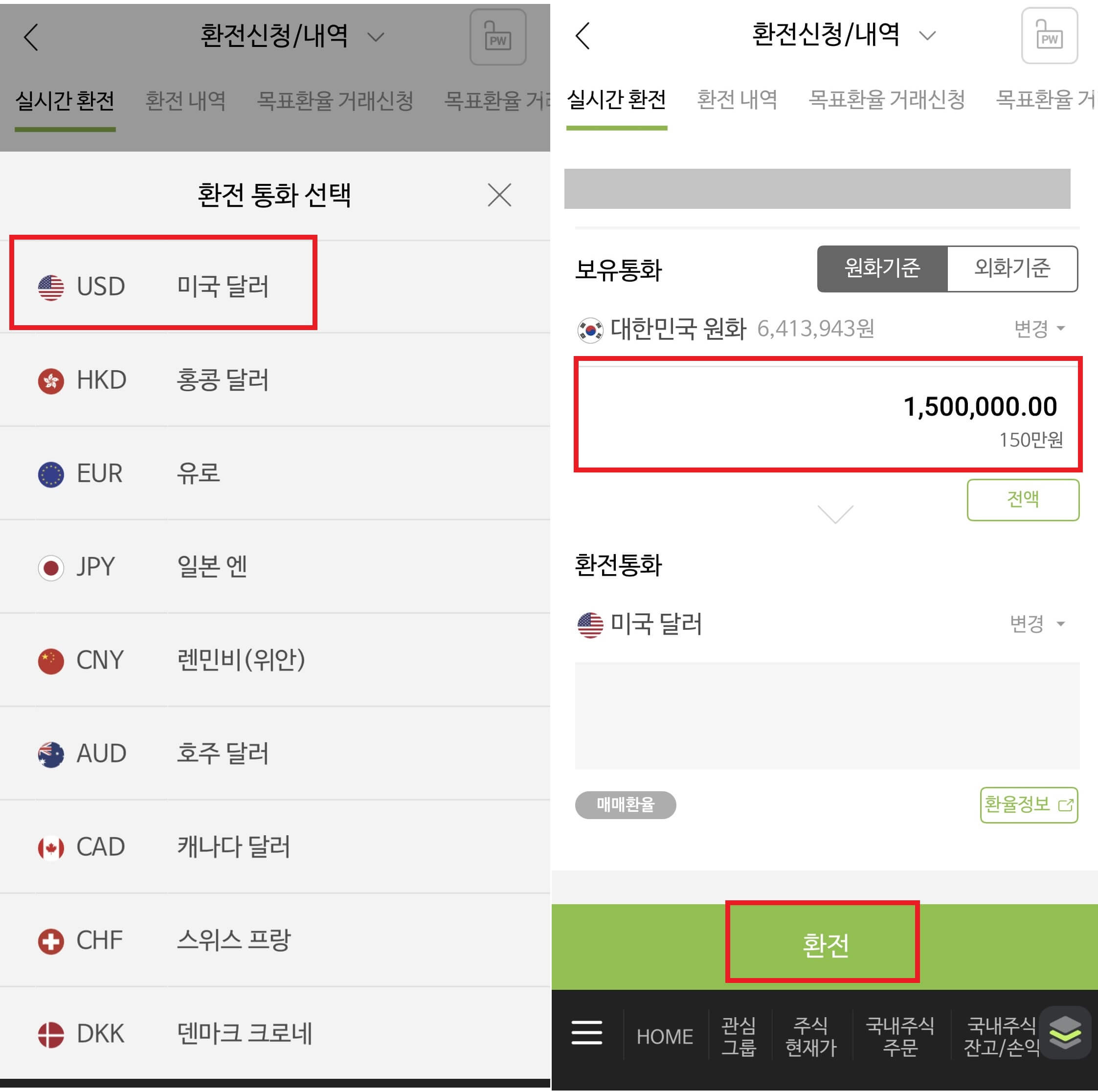 외화는 외화 증권거래를 위하여 현지에 예치되어 있습니다. 국내 외화가 전부 소진시, 당일 환전이 불가할 수 있습니다.
