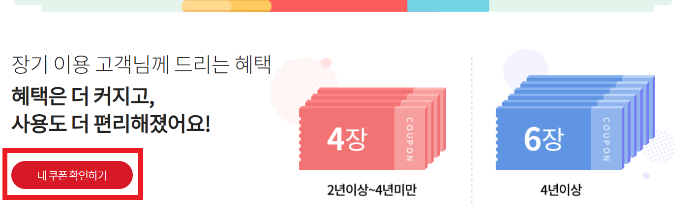 그리고 내 쿠폰 확인하기 버튼을 클릭합니다. 마이 쿠폰에 들어가시면 장기혜택 쿠폰을 선택합니다. 여러 가지 쿠폰 중 밀리의 서재 1개월 이용권을 선택하여, 쿠폰등록을 진행합니다. 완료 후, 밀리의 서재 홈페이지로 접속하면 쿠폰 등록이 완료된 것을 확인할 수 있습니다.