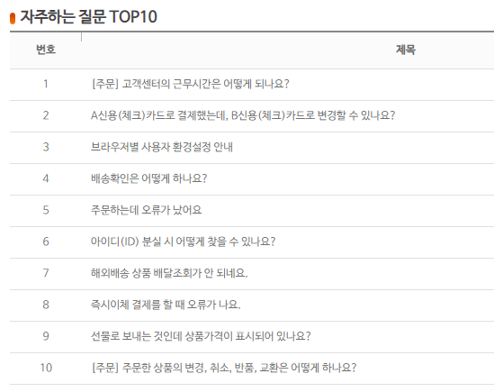 | 5 | 주문하는데 오류가 났어요 | 우체국콜센터(1588-1300) 문의 |